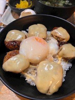 やほ みやびです! 久しぶりのトリキへ! なんかどんぶりカスタマイズできたので 大好きなつくねチーズで作りました!! 学生時代はトリキでバイトしていたんですよ💕 膝軟骨のお串がなくなって本当にショックです😿 膝軟骨の串焼きがあるところ知ってる人いたら教えてくださいい😿 本日もお待ちしておりマン💕 みやび