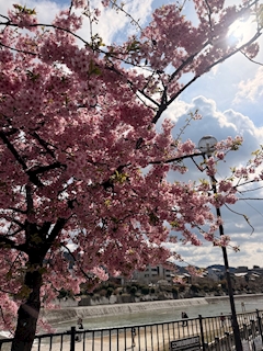 皆様こんばんは〜! 今日から始めましたダリアと申します☺️ぜひ、お会いに来ていただけたら嬉しいです!楽しい会話、美味しいお酒、ストレス発散に来ていただけるの、お待ちしております☺️ 後、絶対共有したいなーと思ったのが、最近散歩してて、鴨川へ降りるところの通りで桜が咲いてたのを見て、やっと春がやってきたな〜と思って心温かくなった❤️ 見てみて〜 今日待ってますね!